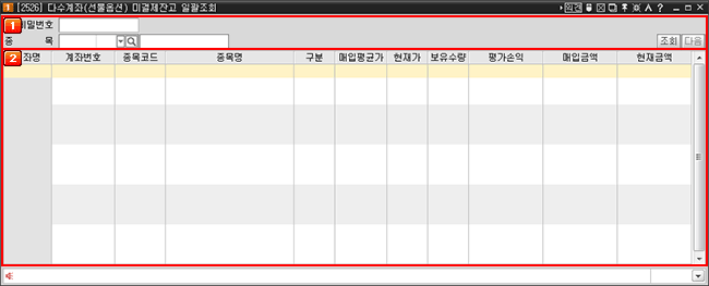 다수계좌(선물옵션) 미결제잔고 일괄조회 [2526]