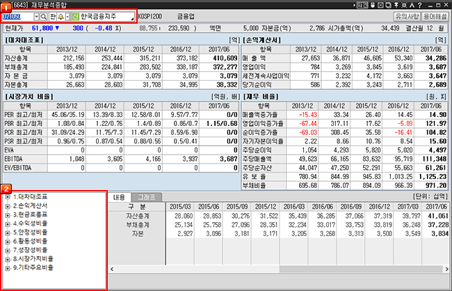 조회하고자 종목의 중요 재무지표를 선택합니다.
