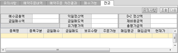 ※ 예약주문접수시에는 잔고 등을 체크하지 않으므로 실주문전환시 처리오류가 발생할 수 있으므로 반드시 주문실행 여부를 확인하시기 바랍니다.