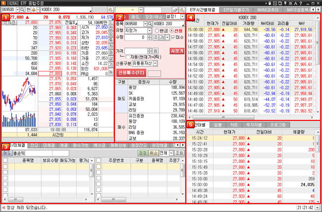 ETF 주문을 실행할 수 ETF주문종합화면으로 매매에 필요한 각종 정보를 한 곳에서 조회하며, 빠른 매매를 할 수 있는 화면입니다.