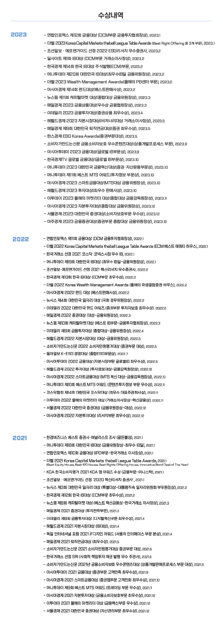 최근 3년간 수상내역 리스트